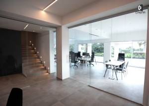 Progettiamo e produciamo una gamma completa di sistemi scorrevoli per porte interne o esterne in vetro.