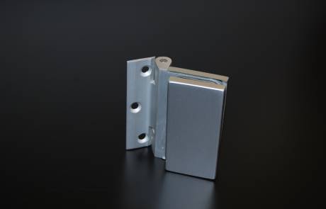 Derecta è una serie di cerniere verticali per porte interne in vetro temprato dal design squadrato.